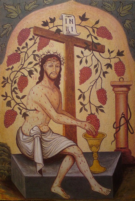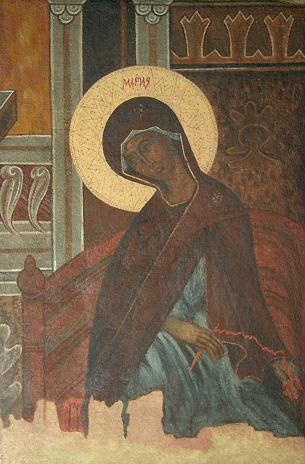 detal, według scena Zwiastowania, Krosno, 15/16 w., Clayintone - napisane ziemią i wodą, 59 x 43 cm