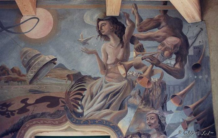 Pierwsze europejskie malowidło gliną na scianie, detal, parafia Alberndorf 1991 r.